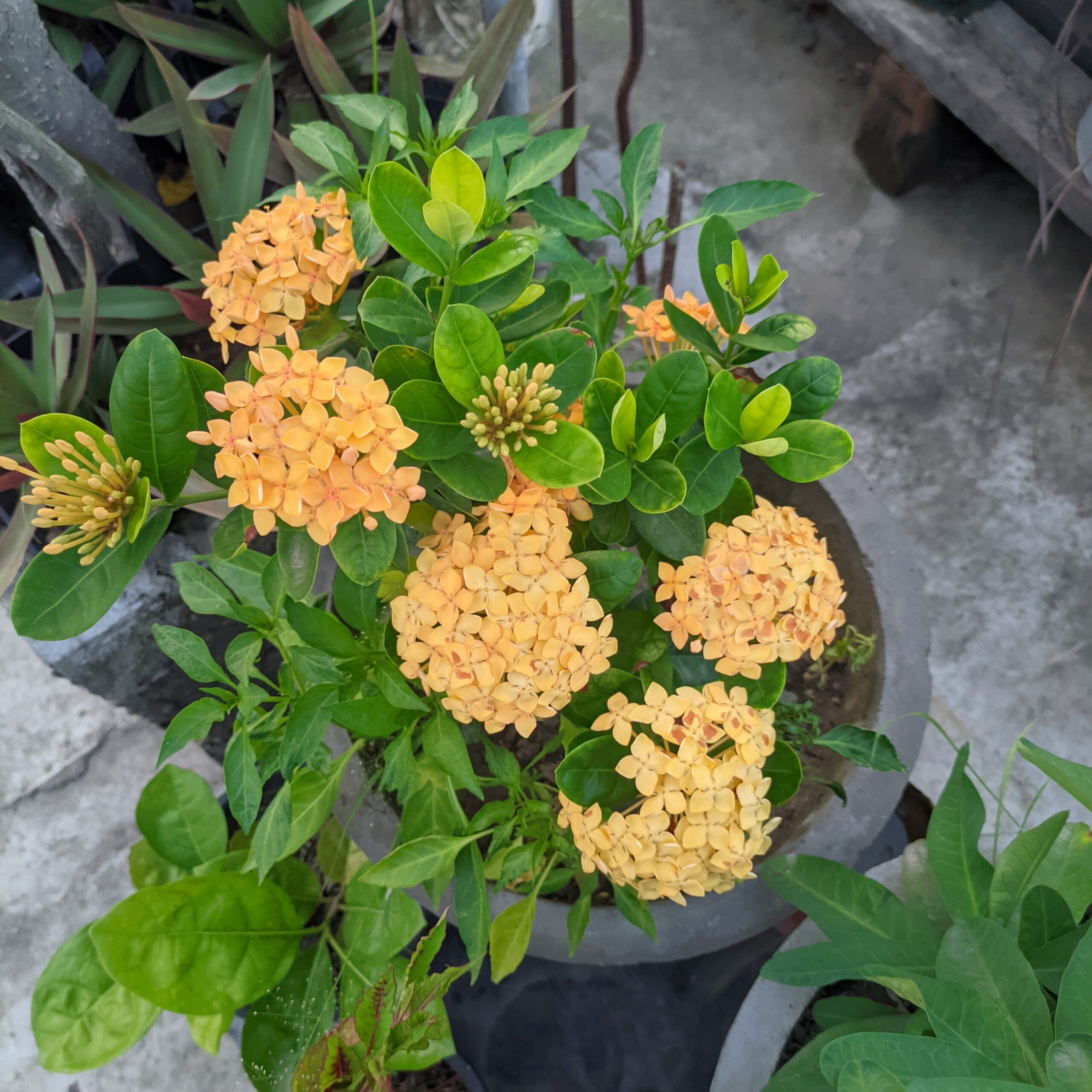 • Sunlight: Ixoras prefer full sun to partial shade. In very hot climates, some afternoon shade can prevent leaf scorch. More sunlight leads to more prolific blooms.